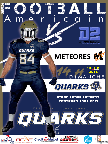 Côté Foot US, l’équipe Senior, menée par un Coaching Staff expérimenté à fort leadership, est championne de conférence Nord et Vice-Championne de France. Son parcours en championnat de D3, avec 6 victoires et 0 défaite commence par la perte des QB1 et QB2, dès la première journée ! Soudée et talentueuse, cette équipe marque l’histoire des Quarks et ouvre un nouvel horizon au Club.
