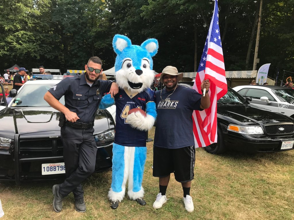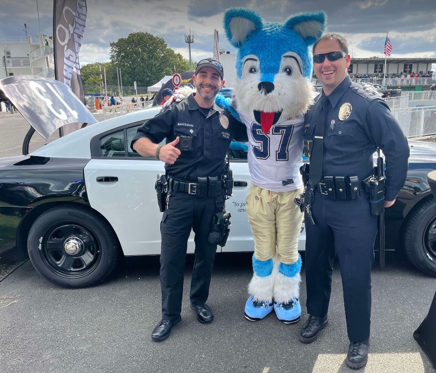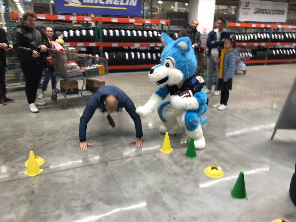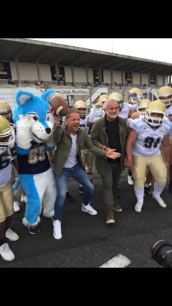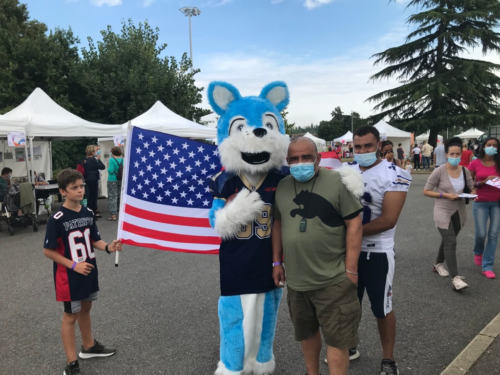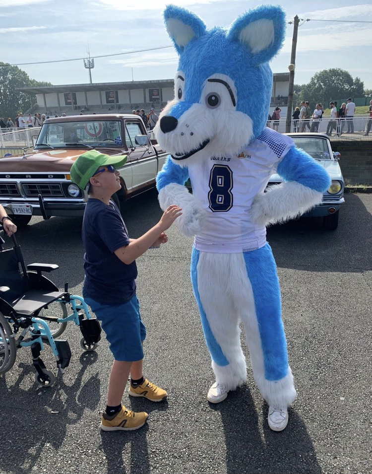 Wolfie avec Steve, gardien du Parc des sports Langrenay